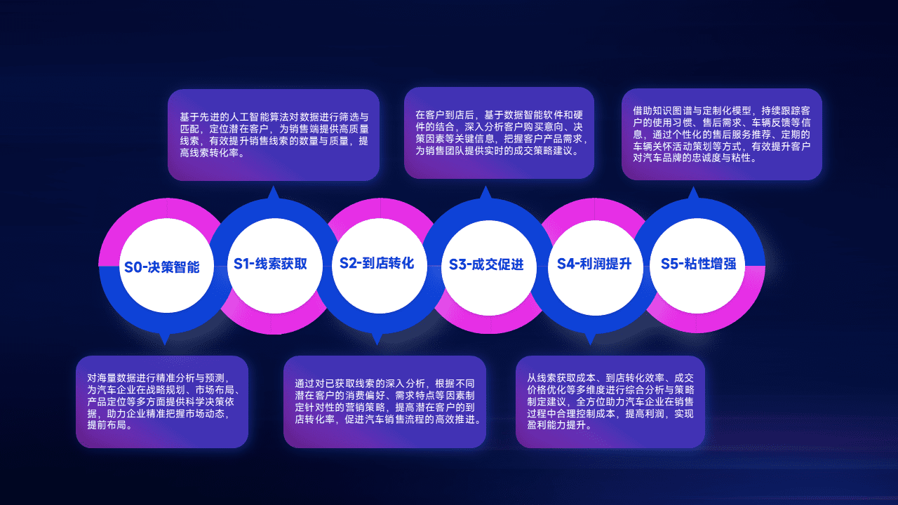通过拓宽潜在客户来源、、、优化线索分配并提高到店转化率,,,,以增强销售效率。。同时,,,,利用线索数据不断优化分析模型,,有效提升转化率,,,,扩大营销影响力。。